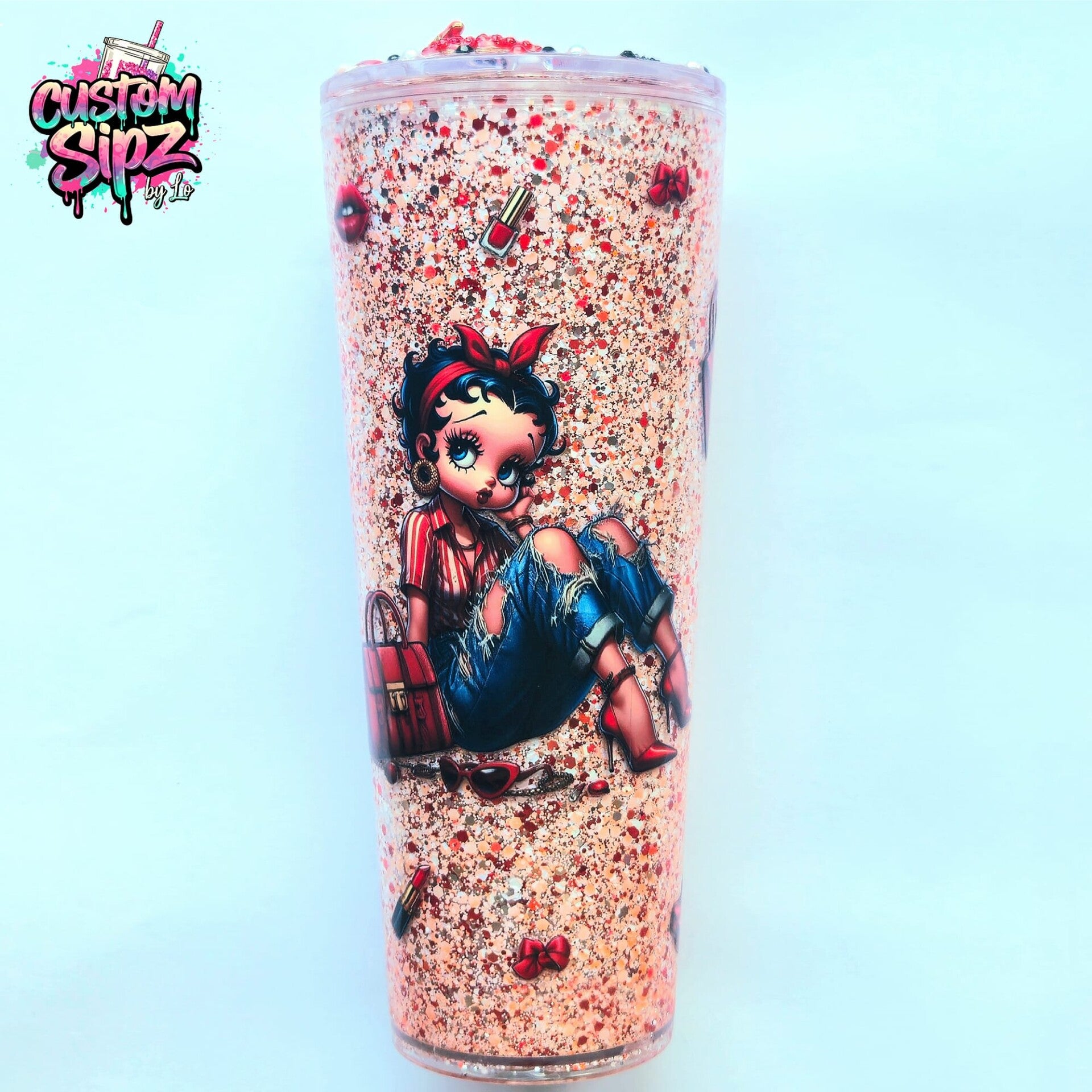 24oz Acrylic Betty boop glitter noglobe and custom lid