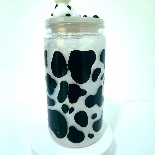 16oz acrylic mica shimmer cow tumbler cup with custom lid